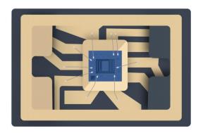 使用硅MEMS技術可以在同一芯片上制造定時陶瓷諧振器和溫度傳感器。使用傳統的石英晶體組裝工藝不可能同時振制造諧振器和溫度傳感器。石英TCXO的封裝,材料和性能限制需要晶體和溫度傳感器之間的大位移。石英傳感器需要對石英坯料進行細致的加工,拋光和修整,以在整個溫度范圍內實現所需的頻率穩定性,而CMOS IC上的振蕩器電路,溫度傳感器和補償電路使用傳統的硅微加工技術制造。將這兩個基于兩種不同材料系統的組件集成在一起會帶來許多挑戰。石英換能器通常使用導電粘合劑安裝在陶瓷封裝中,使得其用環境氮氣懸浮在封裝腔中。晶體通過鎢通孔和金線鍵合電連接到CMOS IC,CMOS IC安裝在封裝的底部。圖3a顯示了一體化石英晶體振蕩器陶瓷封裝的橫截面示意圖3b頂蓋上安裝有石英晶體的去蓋部分和3c與石英晶體相同的部分移除后,顯示CMOS IC,溫度傳感器,振蕩器和補償電路安裝在封裝底座上的晶體下方。
