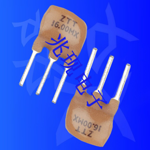 壓電陶瓷諧振器,ZTT16.00MX,陶瓷振蕩子,兆現(xiàn)電子生產(chǎn)的陶瓷諧振器ZTT系列是在原有的ZTA晶振內(nèi)部添加了內(nèi)置負載電容,引線腳于原來的二腳演變成三腳直插式,這樣一來減去了外部線路設計時可以省去電容部分,大大減少了線路空間,且可減少元器件的數(shù)量,增加穩(wěn)定性,減小尺寸,為電路設計者們提供了非常的方便,并且外形尺寸也沒有太大的改變.此規(guī)格的頻率范圍在 2.0 MHz 至 60.00 MHz,頻率公差為 ±0.5%,±0.3%.ZTT三腳陶瓷諧振器產(chǎn)品系列可用于振蕩電路設計,無需外部負載電容器,既獲得了高密度安裝,又降低了成本.產(chǎn)品被廣泛應用到數(shù)碼電子產(chǎn)品,家用電器,無線發(fā)射器,調音線控等電子產(chǎn)品.