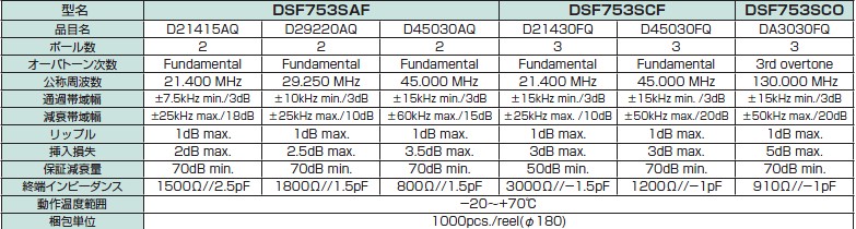KDS貼片濾波器,聲表面濾波器DSF753S,對講機濾波器,外形尺寸:7.0×5.0×1.3,小型?輕量(0.15g)SMD類型通過單體實現4POLE特性,保證衰減量特性卓越耐撞擊性,耐振動性卓越,被應用于商務無線等無線通信機,小型表面貼片型標準晶體諧振器,適用于寬溫范圍的辦公自動化"1D21407AQ3",家電電器及汽車附件等領域。可對應8MHz以上的頻率,在辦公自動化,家電相關電器領域可發揮優良的電氣特性,滿足無鉛焊接的回流溫度曲線要求.