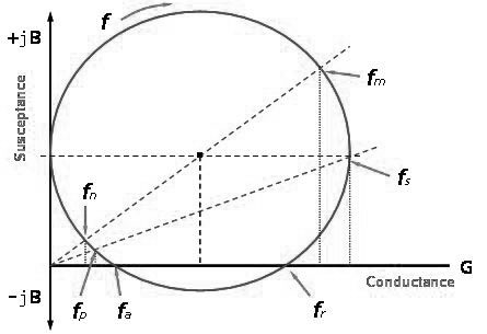 串聯偕振頻率及并聯偕振頻率, fs and fp ,是分別由電導(real part of the admittance)最大和阻抗(real part of the electric input impedance)最大時的頻率.諧振頻率及反諧振頻率, fr and fa , 分別是當電導等于零(純電阻特性)的二個頻率. 在這個時候, fr 的阻抗為 1 / Rr 而fa 的阻抗為 1/ Ra.