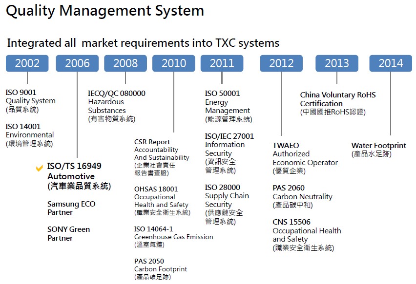 臺灣晶技晶體科技本于‘善盡企業(yè)責(zé)任、降低環(huán)境沖擊、提升員工健康’的理念,執(zhí)行各項環(huán)境及職業(yè)安全衛(wèi)生管理工作;落實公司環(huán)安衛(wèi)政策要求使環(huán)境暨安全衛(wèi)生管理成效日益顯著,不僅符合國內(nèi)環(huán)保、勞安法令要求,同時也能達(dá)到國際環(huán)保、安全衛(wèi)生標(biāo)準(zhǔn). 公司于2008年12月通過OHSAS18001職業(yè)安全衛(wèi)生管理系統(tǒng)驗證,提供勞工符合系統(tǒng)要求的安全衛(wèi)生工作環(huán)境.