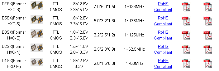 | 進口鴻星晶振說明 | HXO-S |