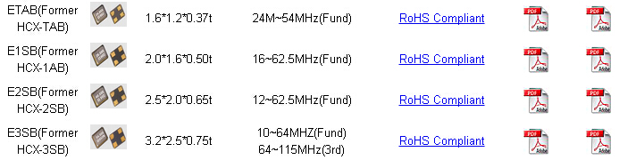 | 進口鴻星晶振說明 | HCX-2SB |