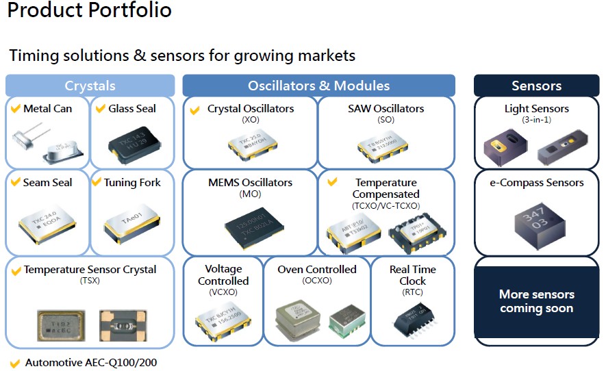 臺灣晶技為一專業(yè)之頻率組件與感測組件供貨商,自1983年成立以來,始終致力于石英晶體相關(guān)諧振器(Crystal)、振蕩器(Oscillator) 等頻率組件之研發(fā)、設(shè)計、生產(chǎn)與銷售,并因應(yīng)市場應(yīng)用與需求.產(chǎn)品"9C-16.000MAAJ-T"被廣泛應(yīng)用到電子數(shù)碼產(chǎn)品,衛(wèi)星GPS導(dǎo)航,智能電腦,智能手機(jī)等產(chǎn)品.月產(chǎn)量8000萬只,成為同行業(yè)中的佼佼者,產(chǎn)品遠(yuǎn)銷西歐一帶國家,巴西,中國香港,大陸,中國臺灣等全球市場.