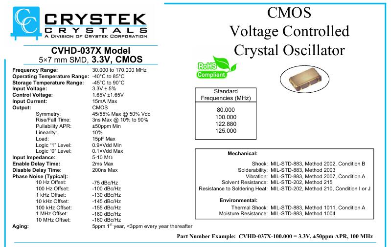 晶振間匠心筑科技當5G信號穿梭天地,當智能設備精準響應,鮮有人留意到,這一切便捷的背后,離不開方寸之間的核心元器件——晶振.美國瑞斯克Crystek晶振的CVHD-037X-125單壓控晶振,以毫米之軀承載極致精度,用嚴苛參數詮釋科技匠心,恰是現代科技大廈的堅實基石.