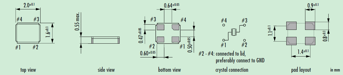 當晶振產品上存在任何給定沖擊或受到周期性機械振動時,比如:壓電揚聲器,壓電蜂鳴器,以及喇叭等,輸出頻率和幅度會受到影響.這種現象對通信器材通信質量有影響.盡管晶體產品設計可最小化這種機械振動的影響,我們推薦事先檢查并按照下列安裝指南進行操作.JXS21-WA晶振,2016封裝晶體,超小型無源貼片晶振
