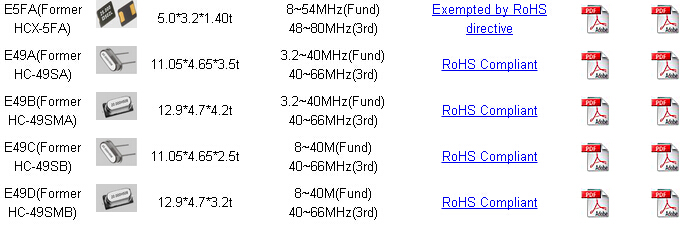| 進口鴻星晶振說明 | HCX-5FA |