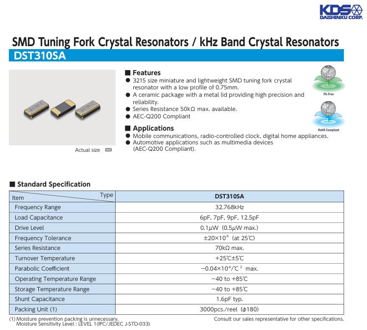 | KDS晶振 | 1TJF125DP1A000A | DST310S | 3215 | 32.768KHZ |