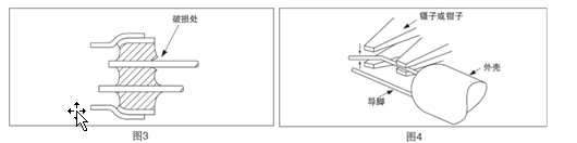 插件型晶振安裝注意事項:安裝時的注意事項導(dǎo)腳型晶振• 構(gòu)造圓柱型晶振 (VT, VTC) 用玻璃密封 (參閱圖 1 和圖 2)。修改插件晶振彎曲導(dǎo)腳的方法(1) 要修改彎曲的導(dǎo)腳時,以及要取出晶振等情況下不能強制拔出導(dǎo)腳,如果強制地拔出導(dǎo)腳,會引起玻璃的破裂,而導(dǎo)致殼內(nèi)真空濃度的下降,有可能促使晶振特性的惡化以及晶振芯片的破損(參閱圖 3)。(2) 要修改彎曲的導(dǎo)腳時,要壓住外殼基側(cè)的導(dǎo)腳,且從上下方壓住彎曲的部位,再進行修改(參閱圖 4)。