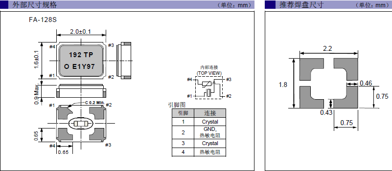 愛普生晶振,石英晶振,FA - 128S晶振,壓電石英晶體諧振器