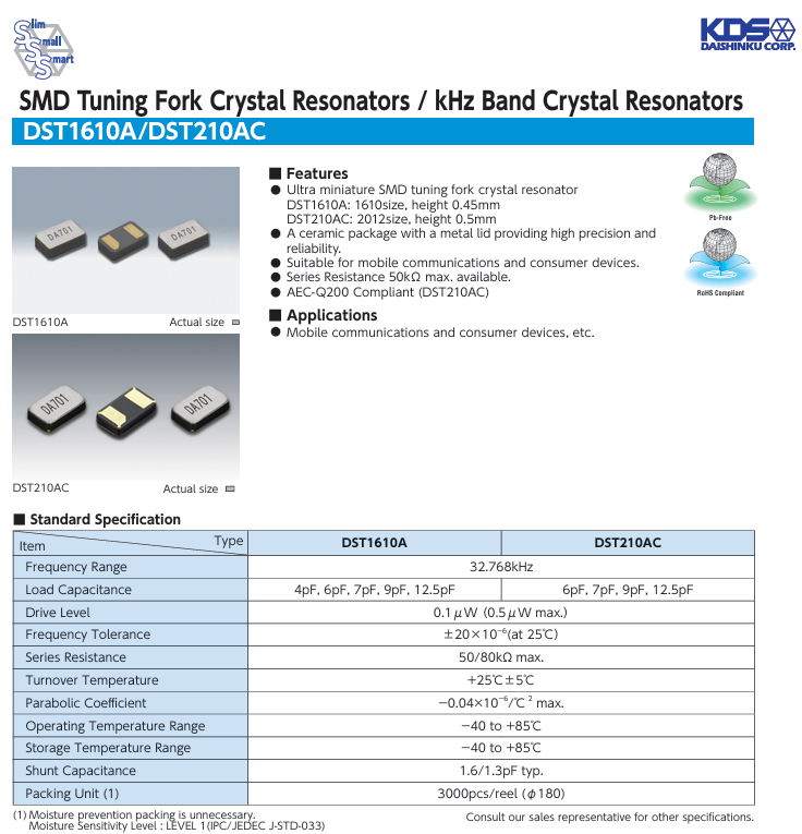 DST1610A 1610 32.768K 12.5PF 20PP -40+85