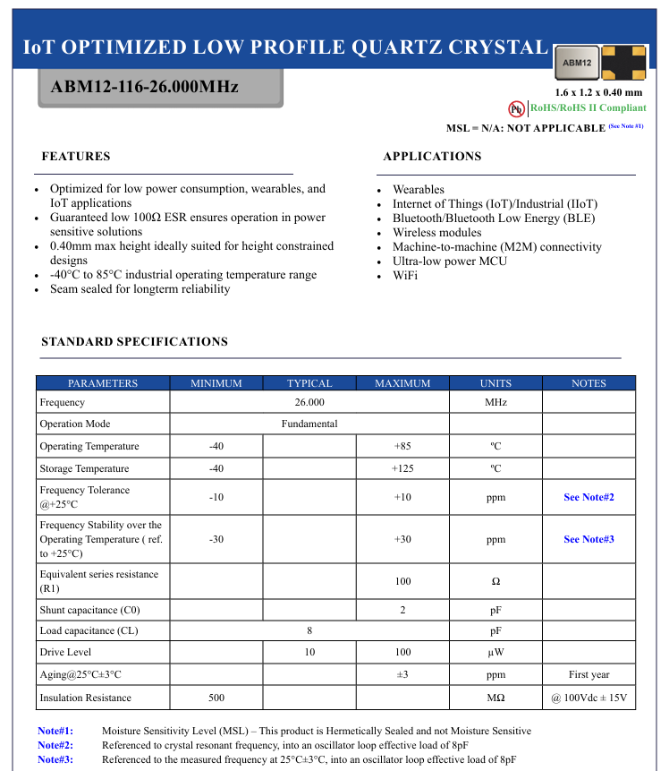 晶振撬動(dòng)智能新時(shí)代當(dāng)可穿戴設(shè)備精準(zhǔn)監(jiān)測(cè)健康數(shù)據(jù),當(dāng)物聯(lián)網(wǎng)設(shè)備實(shí)現(xiàn)遠(yuǎn)程智能控制,當(dāng)藍(lán)牙模塊無(wú)縫傳輸信息,這些智能場(chǎng)景的背后,都離不開(kāi)一個(gè)核心元器件——晶振.美國(guó)艾博康(Abracon晶振)推出的ABM12-116-26.000MHZ-T3晶振,以其卓越性能成為低功耗智能設(shè)備的“心臟”,彰顯著方寸之間的科技力量.