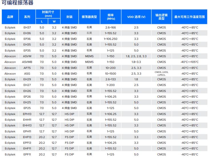 | 晶振編碼 | 晶振品牌 | 有源晶振 | 溫度 | 輸出 | 電壓 | 頻差 | 尺寸 |