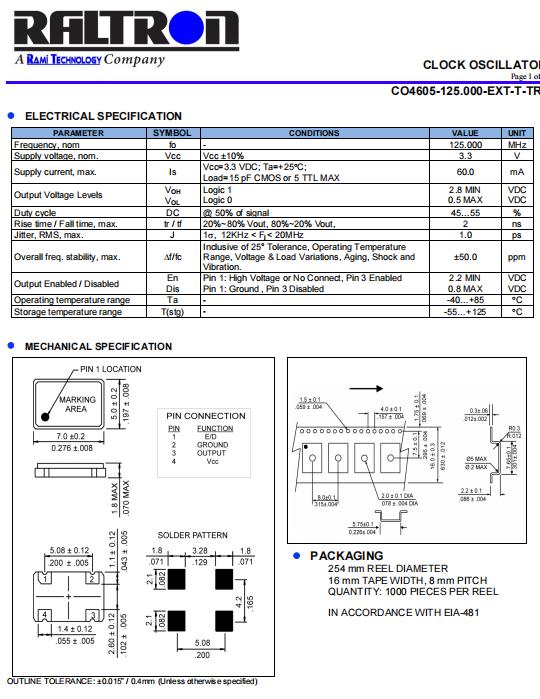 輸出CMOS的OSC晶振CO4605-125.000-EXT-TR常用于5G發射器,Raltron公司是行業領先的元器件制造商,在晶體行業之中致力于追求品質和卓越。 這個哲學通過多年不間斷的增長,使得Raltron處于領先地位。Raltron研發設計出來的石英晶振產品具備優異的質量和成本性能,可以滿足不同應用程序的需求,并以高于用戶滿意度為最大的前提,而用于汽車應用的Raltron晶體單元的優點:小而薄,回流兼容,AECQ-200質量可靠,聲譽可靠,環境優良等優點,其中良心之作的有源晶振更是達到頂尖水平。