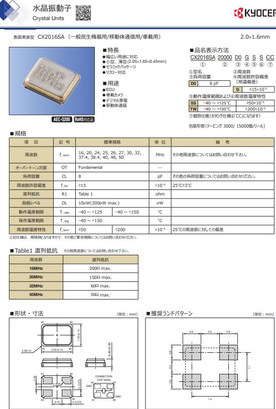 | CX3225GB16000P0HPQCC | AVX Corp/Kyocera Corp | CX3225GB, Kyocera | MHz Crystal | 16MHz |