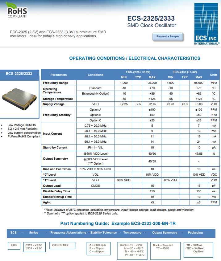 | ECS-2333-330-BN-TR | OSC XO 33.000MHZ CMOS SMD | ECS-2333 | 3225 | 4 |