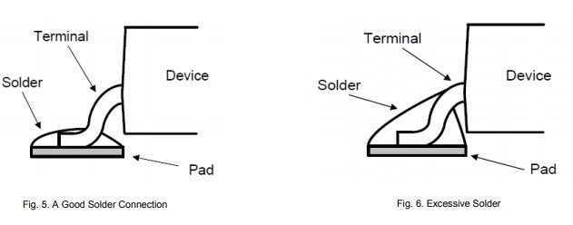用適量的焊料連接,圖6顯示過(guò)量的焊料.