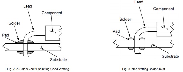 來(lái)自器件引線(xiàn)或端子的活性焊劑.當(dāng)污染物沒(méi)有被適當(dāng)?shù)貜?br /> 器件的焊盤(pán)和/或引線(xiàn)會(huì)發(fā)生去濕.去濕的特征在于