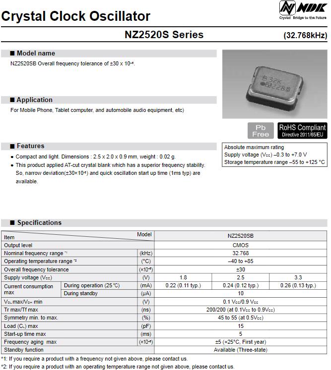 | NZ2520SB-32.768KHZ-NSA3535C | NDK America, Inc. | NZ2520S | 32.768kHz | 2.5V |
