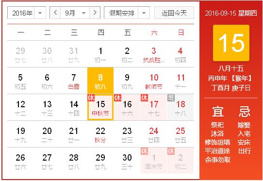 大家好!中秋佳節來臨之際,我司根據國務院辦公廳公布的《2016年節假日安排的通知》的有關規定,結合我司實際狀況,經研究決定放假三天:9月15~17號.于18日(星期天)正常上班.放假期間我司暫停發貨,給您帶來不便,敬請諒解.請市場部各位同仁,放假之前做好客戶的備貨以及發貨等相關工作.