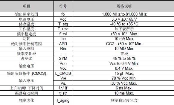 晶振規格: