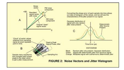 圖示出了矢量形式的信號(hào)及其相關(guān)的噪聲矢量,它可以在任何時(shí)間點(diǎn)建模為其原始矢量和噪聲矢量之和,該低噪聲晶振矢量是所有噪聲信號(hào)的合成當(dāng)下,通過(guò)分析在值的分布和頻率上,我們可以表征相位噪聲,抖動(dòng)和幅度噪聲出現(xiàn)在信號(hào)中并了解其原因和可能的改進(jìn),衡量的系統(tǒng)相位噪聲或抖動(dòng)可以進(jìn)行某種形式的分析,為了分析抖動(dòng),我們可以去除幅度變化,只看一下云的窄片表示采樣矢量的相位角,如果噪音是許多不相關(guān)的隨機(jī)噪音效果,然后相位值的分布將是高斯分布,在理想中心附近有很多叢生價(jià)值越來(lái)越遠(yuǎn).